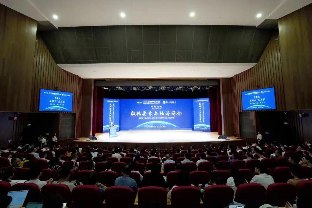 7月4日,2025全球数字经济大会“数据要素与经济安全”专题论坛(以下简称“论坛”)在首都经济贸易大学成功召开。论坛由全球数字经济大会组委会主办,首都经济贸易大学承办。论坛围绕数据要素与经济安全主题展开讨论,旨在探讨数据作为新型生产要素在经济发展和国家治理中的作用与风险。本次专题论坛设置成果发布、主旨演讲、平行论坛以及邀请报告等多个环节。北京市教育工委委员、教育委员会副主任吴洁,原中国保监会党委副书记、副主席周延礼,美国国家科学院院士刘军,北京市知识产权局党委书记、局长孟波,北京市政府副秘书长丁章春,北京市统计局核算处处长方秀玉,以及来自清华大学、中国人民大学等40多所高校的校领导及学校代表出席此次盛会。本次论坛同步开设现场直播,在线下700余人参会的同时,共计5000余人同步线上观看。