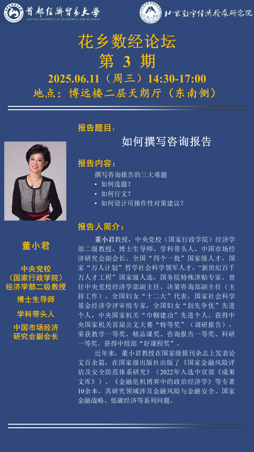 首经贸 “花乡数经论坛” 第3期 | 董小君:中央党校(国家行政学院)经济学部二级教授