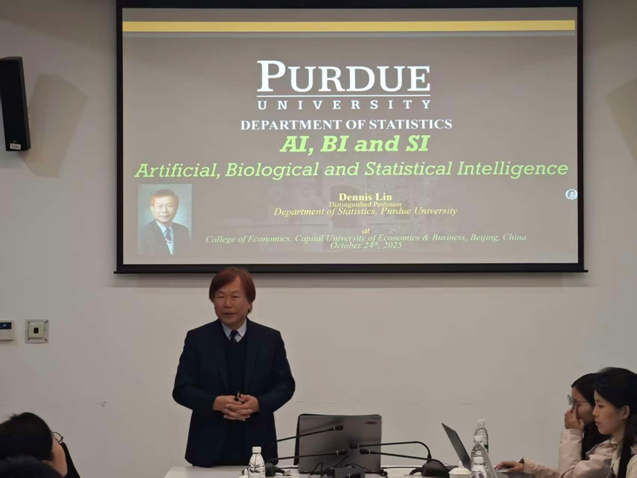 林共进教授以《Al, BI & SI-Artificial, Biological and Statistical Intelligences》为题,系统介绍了人工智能(AI)、生物智能(BI)与统计智能(SI)的特点及局限性。林教授首先强调了统计学研究值得关注的几个问题,肯定了统计智能的重要性。随后他指出,AI具有强大的算力,BI具有创新创造的能力,AI与BI因其各自功能的独特性而不可能相互替代。报告内容深入浅出,通过大量举例比较分析,引导在场人员思考“如何将AI、BI和SI相结合,从而帮助人类更好地完成任务”。